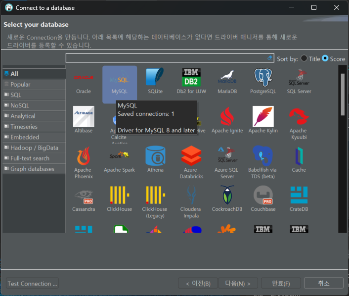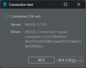 이후 테스트 연결이 성공적으로 잘 연결되었다면 '완료' 버튼 눌러야한다.