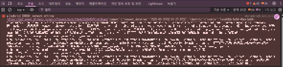 나는 카카오 공유하기 기능을 개발하여 테스트 중이었으나, 갑자기 위와 같은 요청 실패와 에러를 만났다.