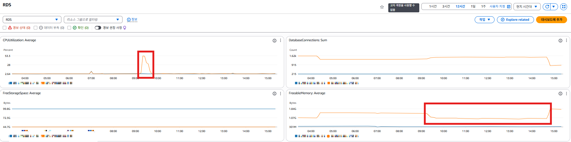 - 만약 RDS 커넥션 풀 사이즈가 크거나 쿼리가 무거운 경우, 피크 순간 이후에도 메모리가 장시간 낮게 유지될 수 있음