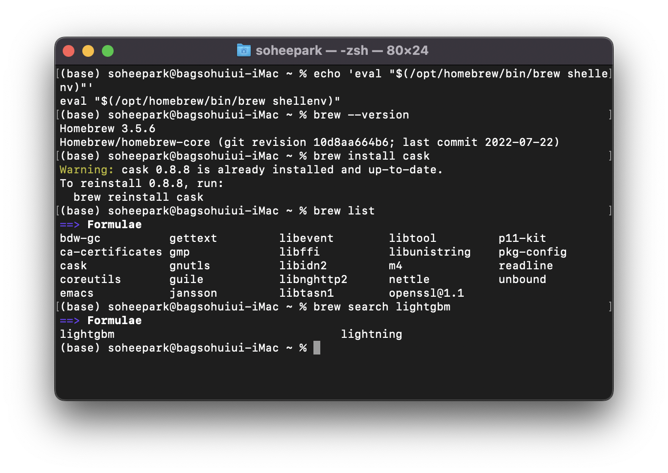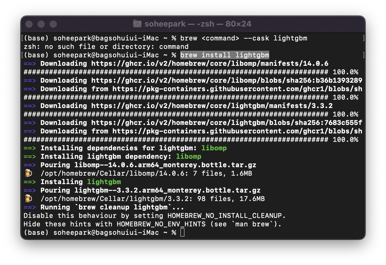Homebrew로 lightGBM을 설치하기 전 cask 패키지를 설치해줘야 한다.