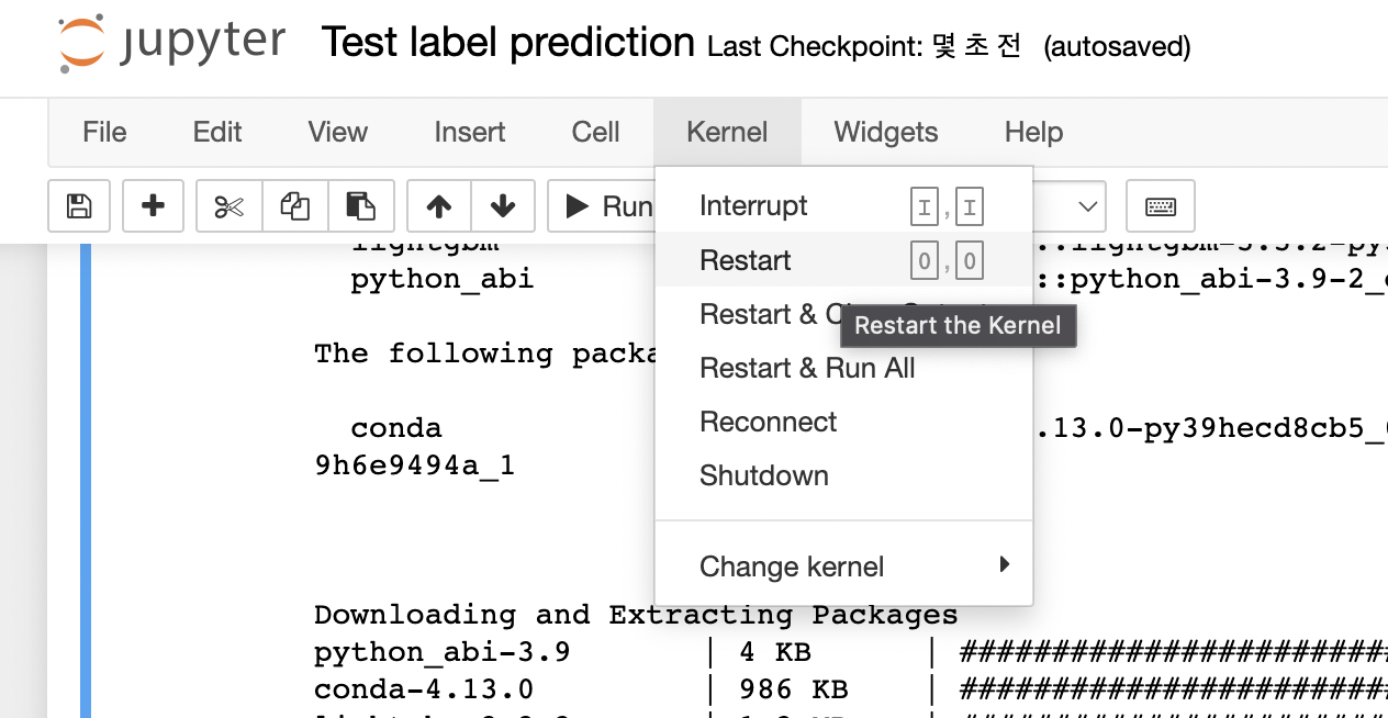 pip으로 설치가 되었다고 나왔고, kernel 또한 재시작 하였으나,