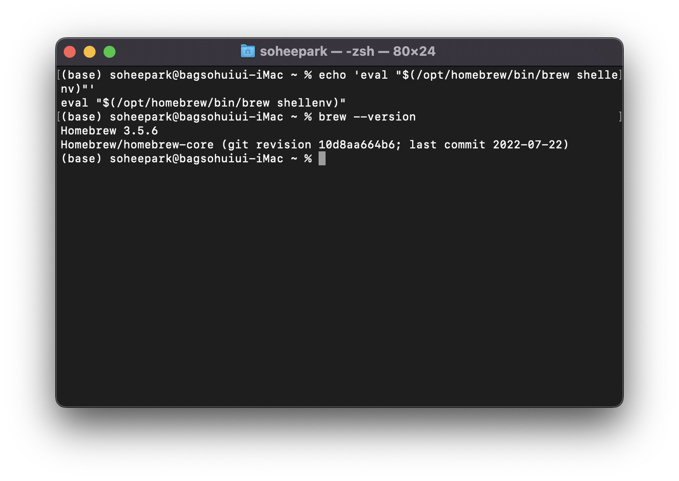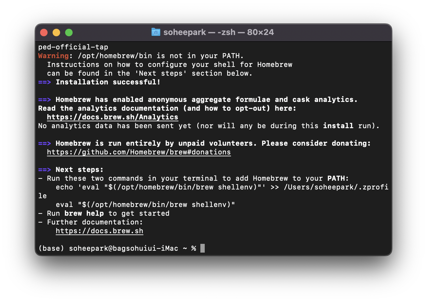 Homebrew 설치가 완료되었다.