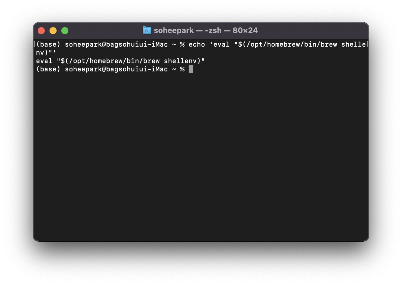 // (/opt/homebrew/bin/brew shellenv) : warning 옆 경로 복사 붙여넣기