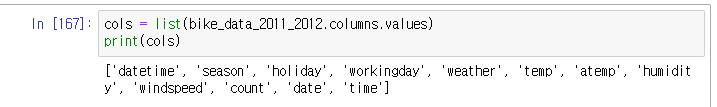 우선 하나하나 다 적기 귀찮으니까 복붙할 col list를 출력하였다.