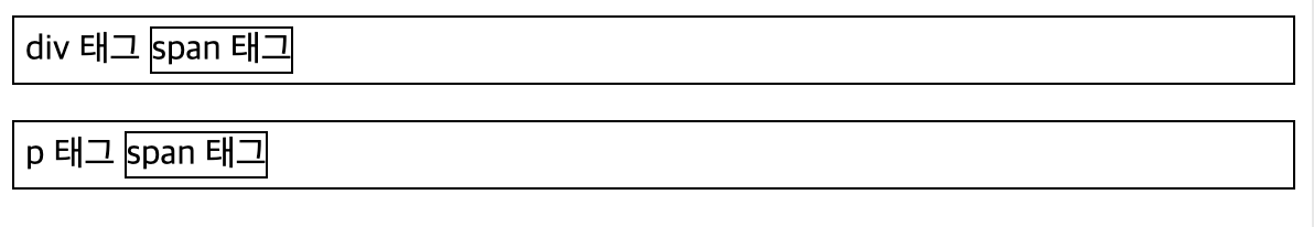 블록 요소 <div>, <p>는 인라인 요소인 <span>을 태그 안에 포함할 수 있다.