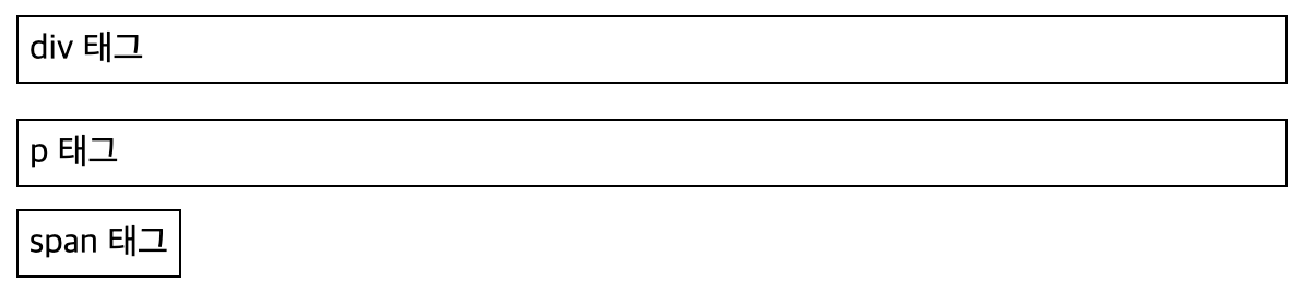 <div>, <p> 태그는 내용물의 길에 상관없이 한 블록을 차지하고 있는 반면,
