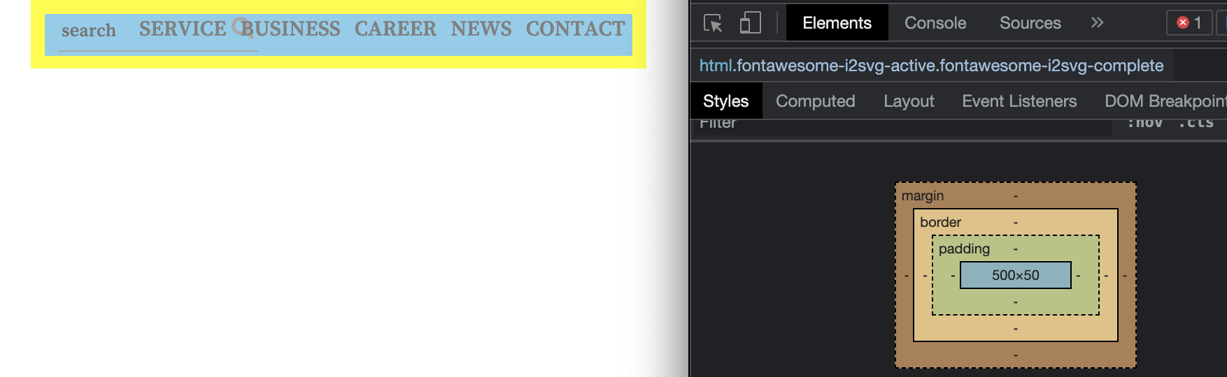 fontawesome을 이용하여 돋보기 아이콘을 search 영역 안에 추가했다.