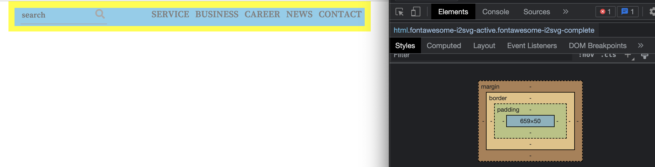 내가 원하는 것은 search와 나란히 배치된 menu, 이 두 영역이 웹페이지 맨 상단에 남는 공간 없이 완전히 붙어있는 것이다.